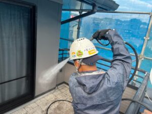 チョーキング現象が起きた外壁の補修は、高圧洗浄で粉を洗い流し、塗装の塗り替えを行う手順になります。 それぞれの工程をご紹介します!