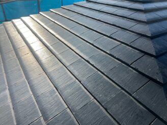 屋根は、無機成分の配合により業界最高水準の汚れにくさの「超低汚染リファイン500MF-IR」での施工です。