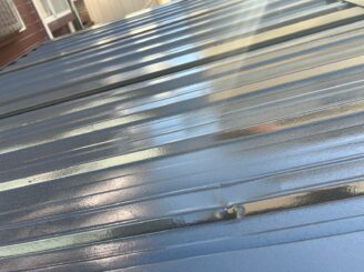 倉庫屋根 上塗り施工状況