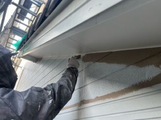 軒天 下塗り施工状況